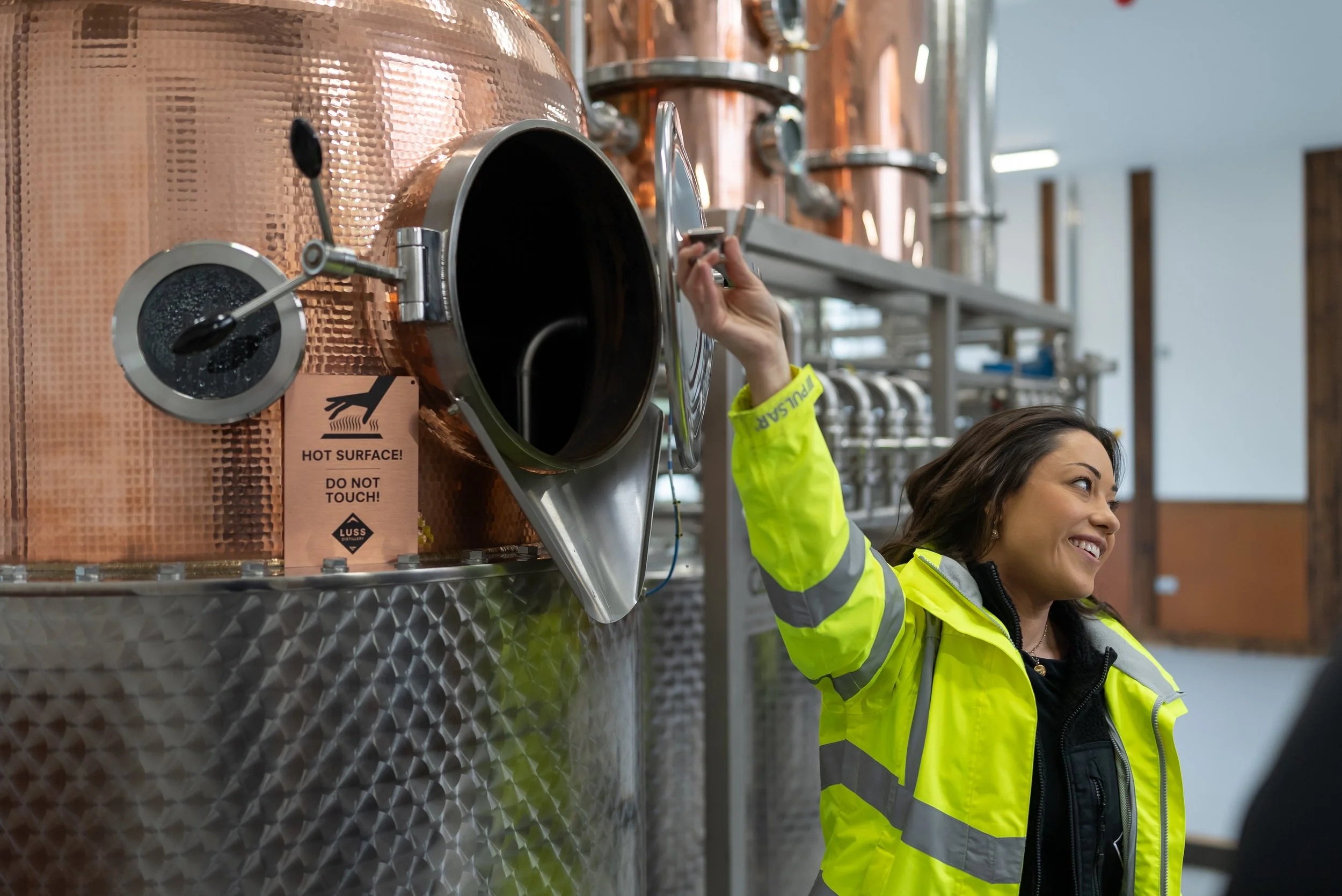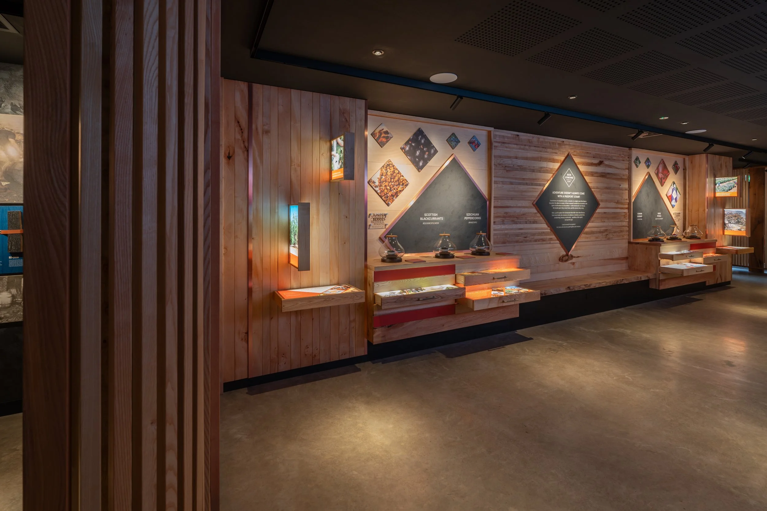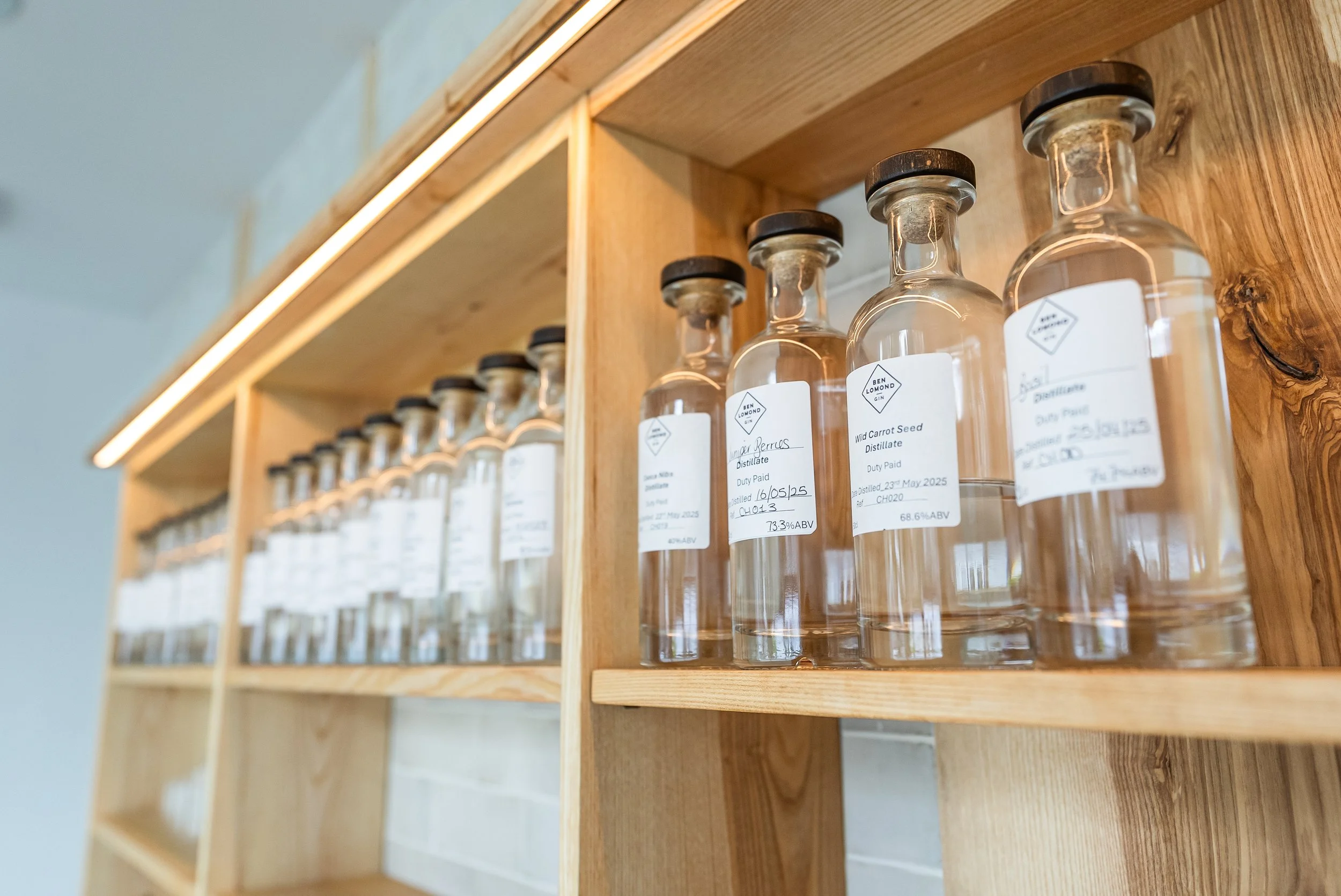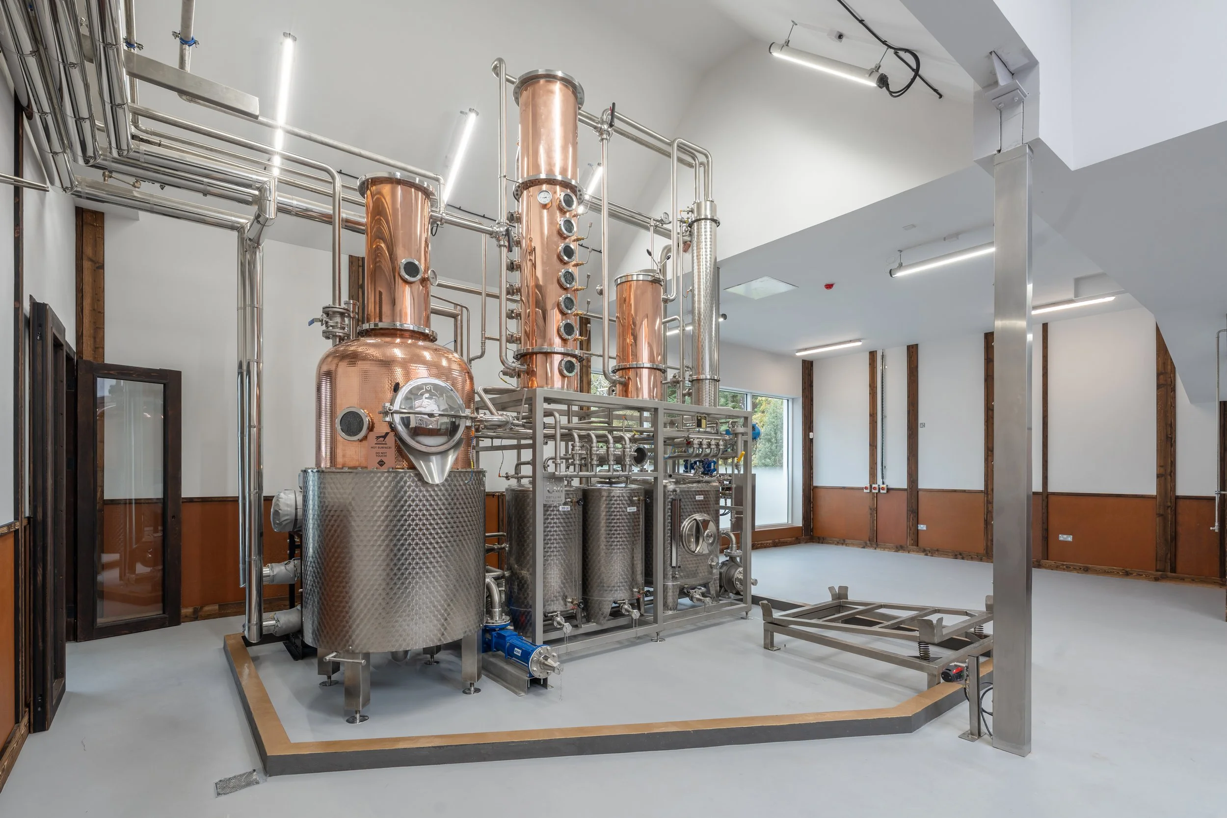We reimagined the existing buildings to house the new gin still, and in doing so, pushed the structural boundaries of the space. The new atrium roof proudly features timbers reclaimed from the 100-year-old Fergusons Chocolate Factory in Cathcart - just a stone’s throw from our Glasgow workshop - continuing the story of Scottish material heritage and craft.